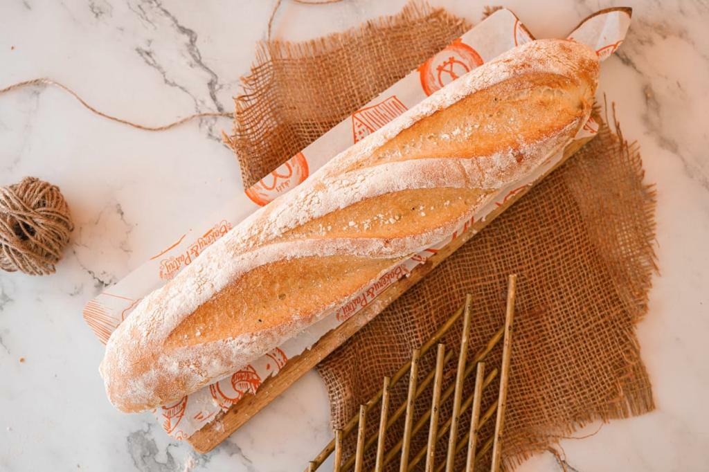 Ciabatta bread is an Italian bread is characterized by its elongated, rectangular shape and its rustic, chewy interior with a crispy crust.
